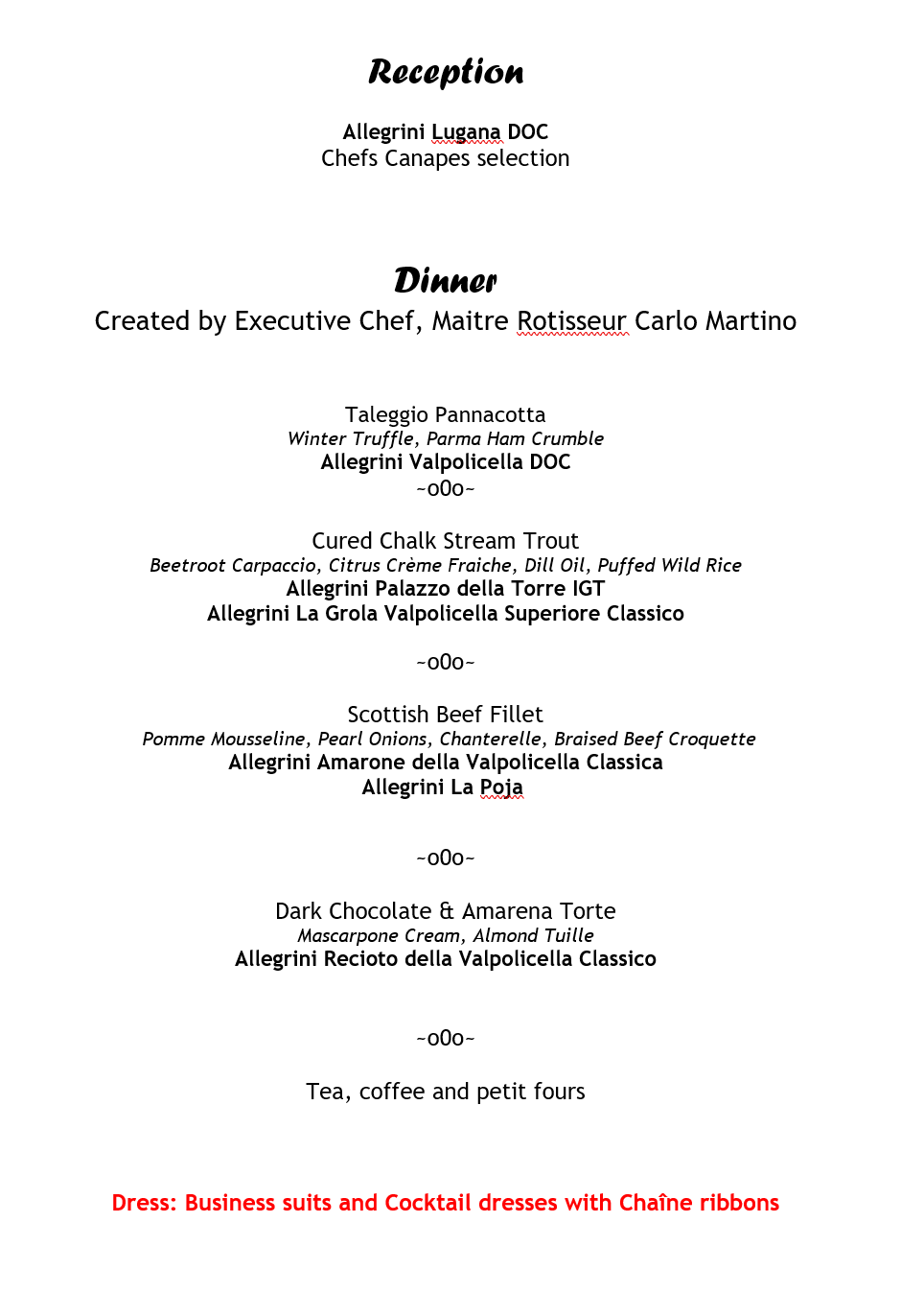 This will be sure to be a stunning event with wines directly from the world famous Allegrini estate in northern Veneto. Their top wines La Grola and La Poja are highly sought after and the latter being produced in limited quantities from the hilltop vineyard. Our Host for the evening is Matteo Allegrini the Oenologist and Export Director.