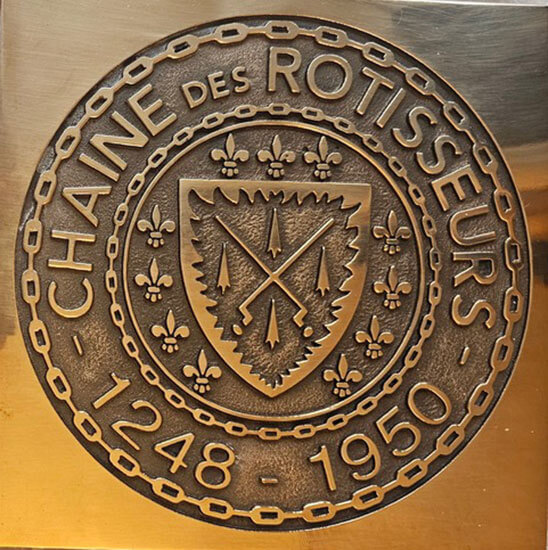 To signify hospitality professional membership in the Chaîne des Rôtisseurs and to provide immediate recognition of an establishment of exceptional quality and excellence, selected members display our prestigious brass plaque. It serves to distinguish the Chaîne as a leading international gastronomic society and to respect the values on which our society is based.